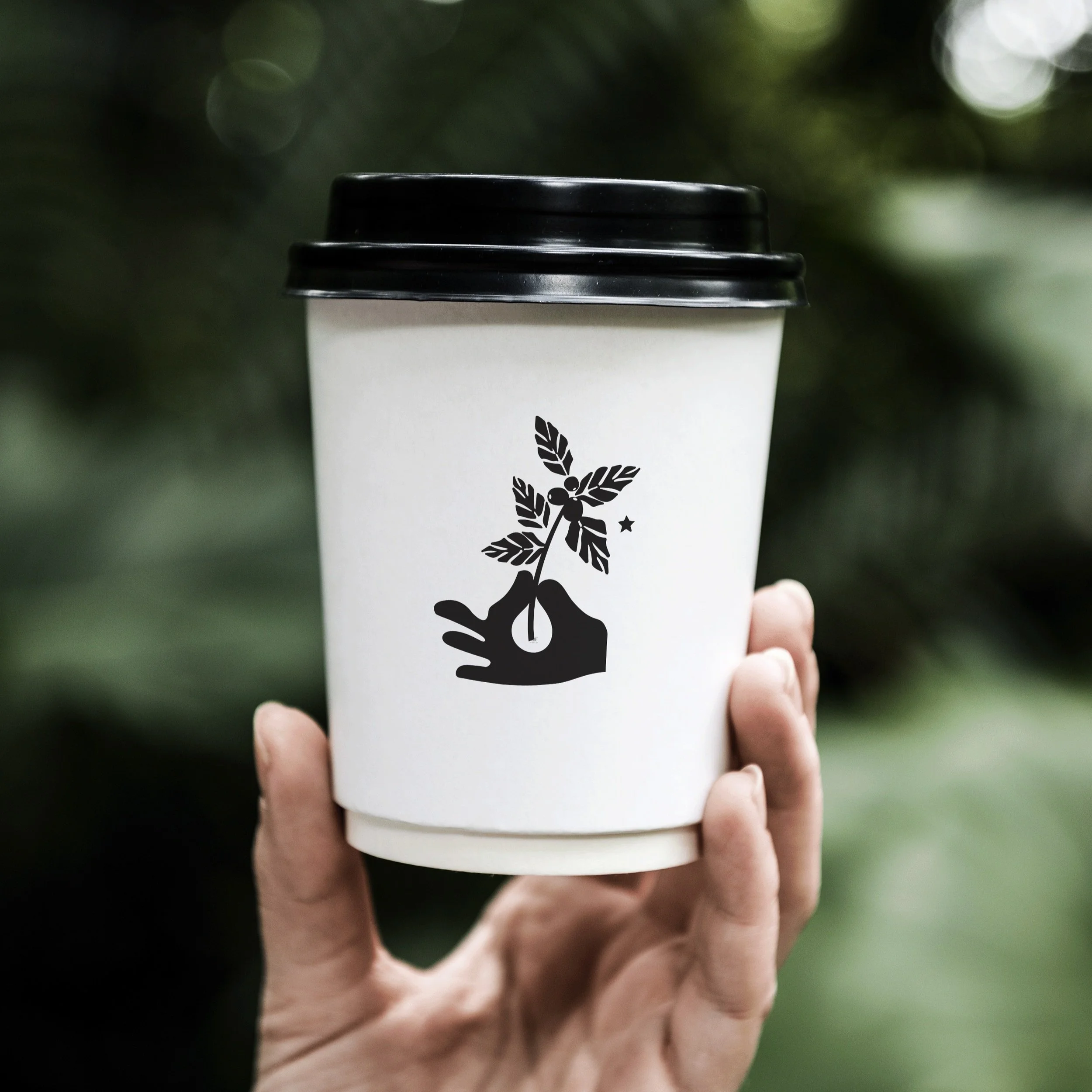 I decided to move forward with the depiction of a hand picking the coffee cherry plant, emphasizing the connection to the often-overlooked individuals involved in the process. Additionally, the color variation of the coffee cherries illustrates different phases of development. I incorporated "USA" and "23'" as markers for the brand's origin and creation date, drawing on traditional American markings.
